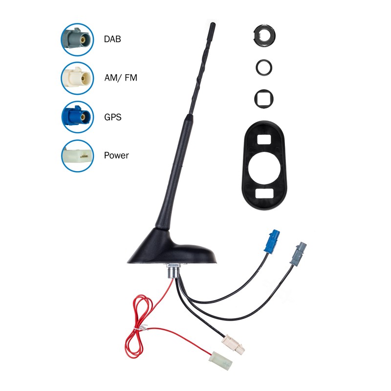 • DAB* reception, active and low noise in the areas B III, L-band passive