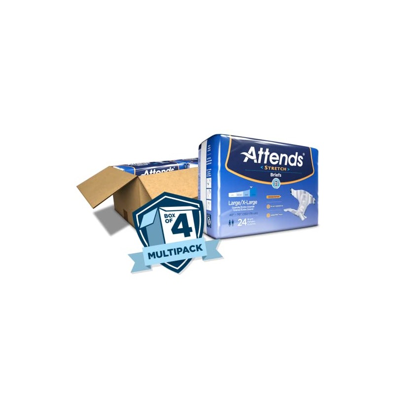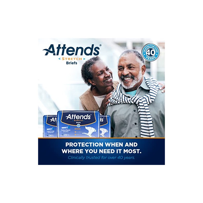 Attends Stretch Briefs with Advanced Dry-Lock Technology for Adult Incontinence Care, Large/X-Large, Unisex, 96Count