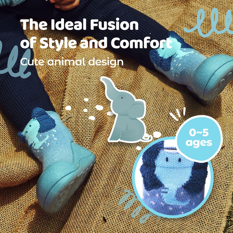 Attipas Elephant 6.5 Baby First Step Socks Shoes for Toddler Infant Boy and Girl Essential Non-Slip First Walking Sneakers for Infants and Babies Non-Skid Walk Sneakers Rubber Sole Gift for Newborn