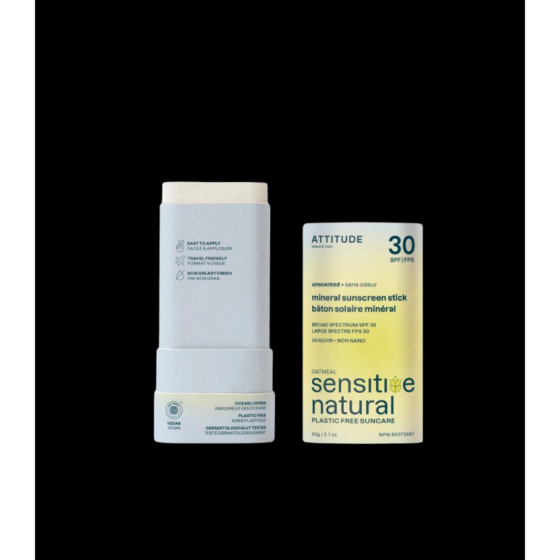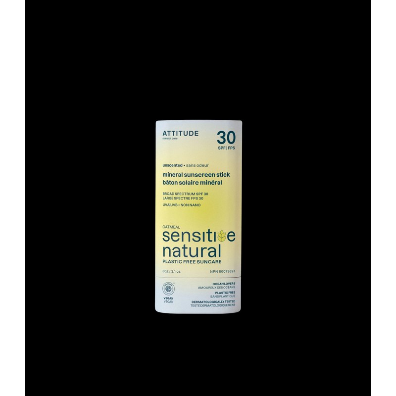ATTITUDE™ Sensitive Natural sunscreen stick is formulated with non-nano zinc oxide to limit our impact on the oceans. This mineral filter provides broad spectrum protection against UVA and UVB rays. Practical and environmentally friendly, this sunscreen for delicate skin comes in a biodegradable cardboard tube and applies easily without leaving white traces. An EWG VERIFIED™, vegan and dermatologically tested formula. Sunly sun protection lets you enjoy outdoor activities worry free!