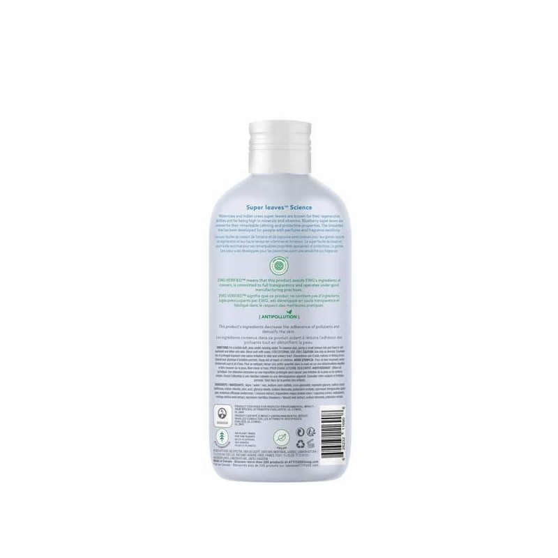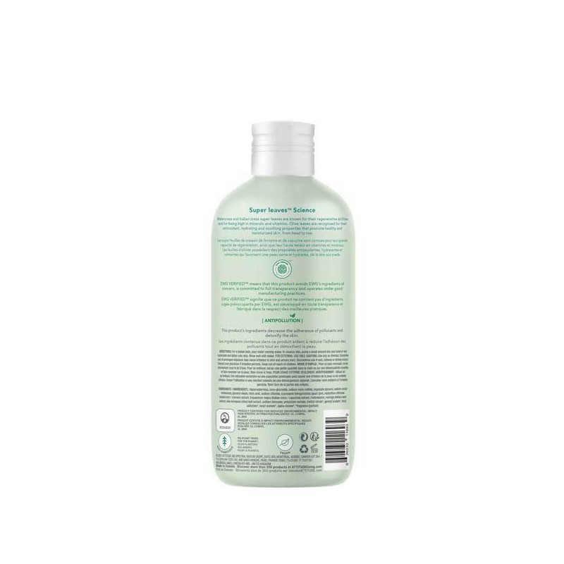 Soak into a bubbly bliss with the new ATTITUDE Super leaves™ Bubble Wash. Featuring a natural blend of Indian cress and watercress leaves extracts, Attitude's gentle bubble wash will delicately cleanse and protect even the most sensitive skin, leaving it quenched, nourished and soft! Plus, it is EWG VERIFIED™, hypoallergenic and dermatologically tested to protect your delicate skin. Plunge into ultimate relaxation with Attitude's natural bubble wash.*