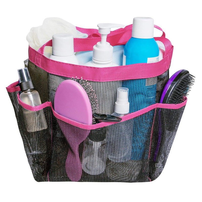 - Premium Material : The mesh shower caddy is made of tough and versatile mesh. It's also equipped with two sturdy reinforced handles which can be used to hang the tote on pegs or hooks.