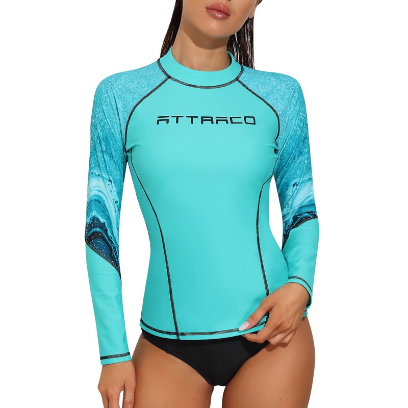 ATTRACO Womens Rash Guard Long Sleeve Sun Protection Rashguard Uv Wetsuit Shirts Aqua L