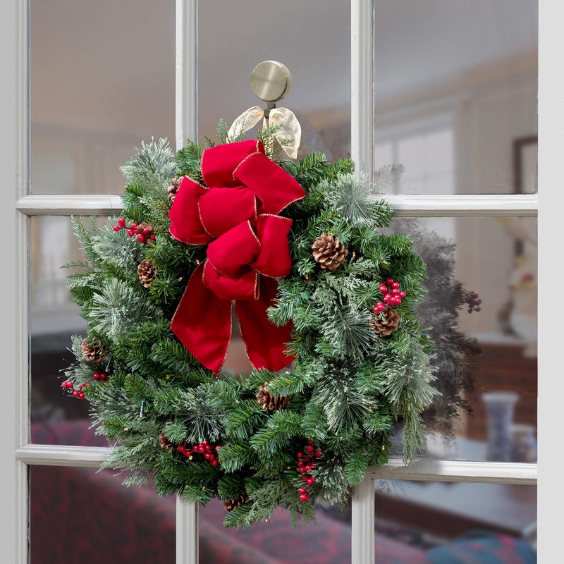 - Magnetic wreath hanger 2-PACK is intended to be used together, by placing one magnet on either side of the single-pane glass (such as a storm door) or it can also be used separately on metal doors/surfaces. This product will not work on thick double-pane glass or non-magnetic surfaces, such as wood and aluminum