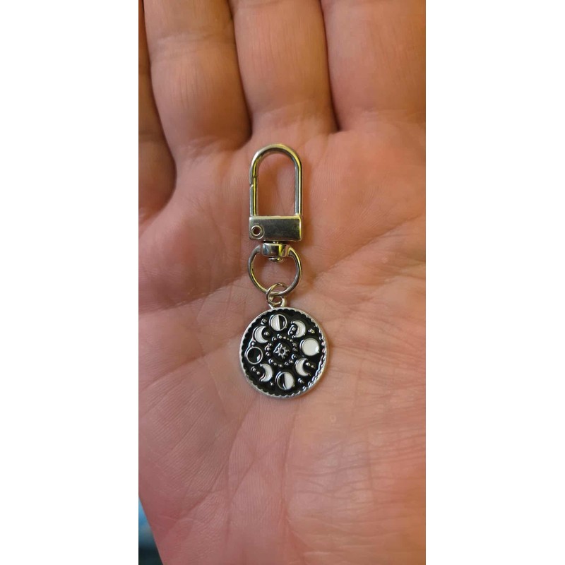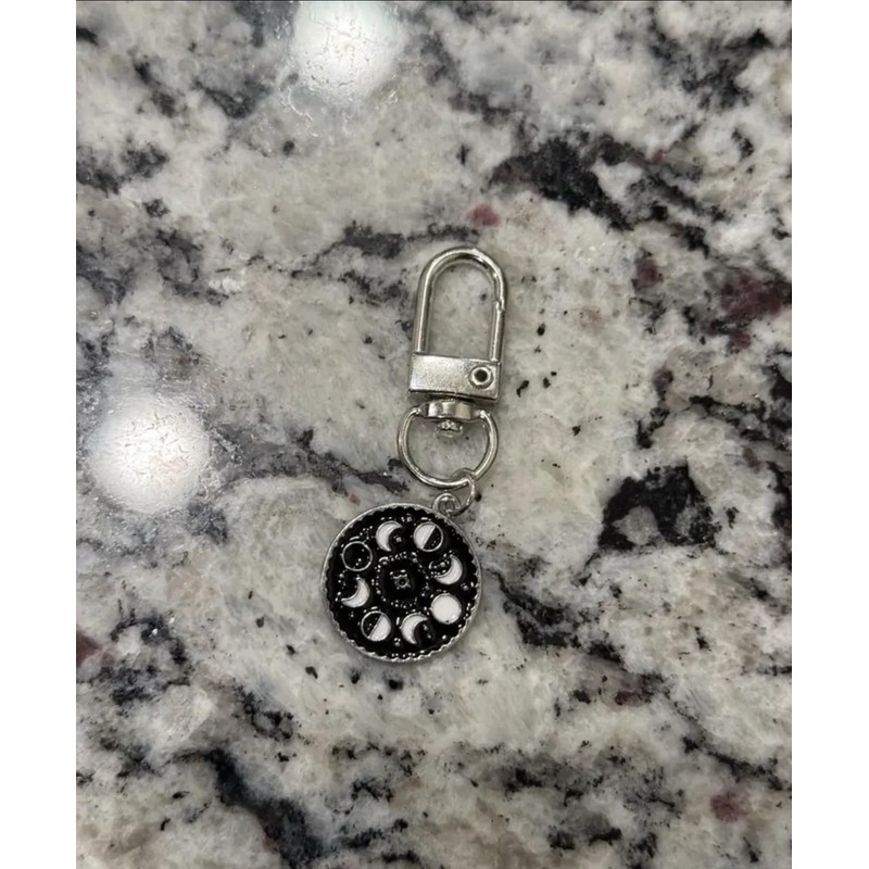 AttractionOil.com Moon Phases Keychain Charm, Black and Silver, 2.44 inch Length, Celestial Design