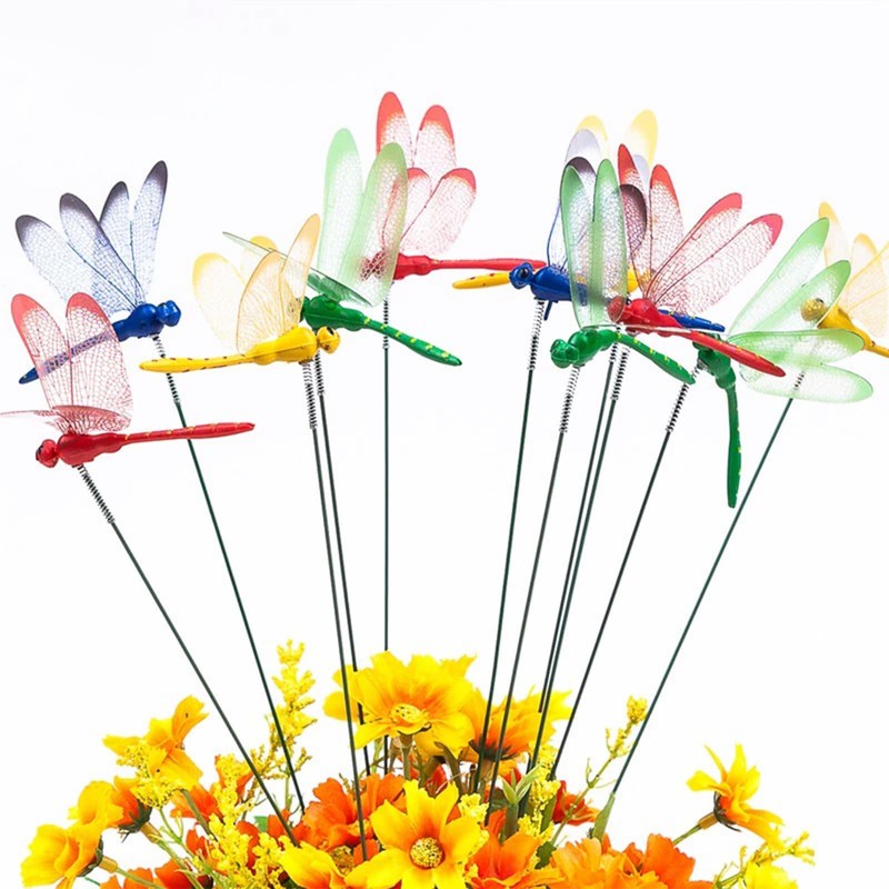 Attuslla 50 PCS 3D Dragonfly Garden Decor Dragonfly Stakes with Sticks