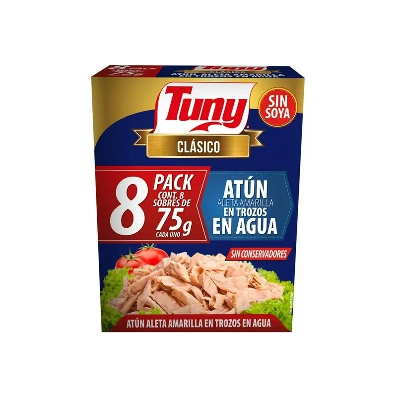 Atun En Trozos En Agua Tuny Clasico Paquete Con 8 Sobres De 75 Gr C/u