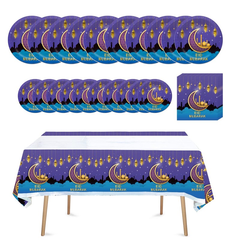 Atvscay Eid Mubarak Tableware And Tablecloth Ramadan Mubarak Party Decorations Muslim Ramadan Eid Party Plates Napkins AndTablecloth (Tableware and Tablecloth set)