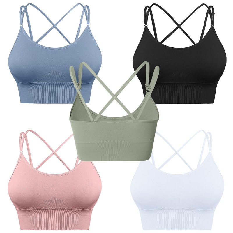 Atxnn Women's Sports Bra Adjustable Shoulder Strap Yoga Bra Push Up Bustier Crossback Seamless without Underwire with Removable Padded for Fitness Running Jogging, 5 Pieces