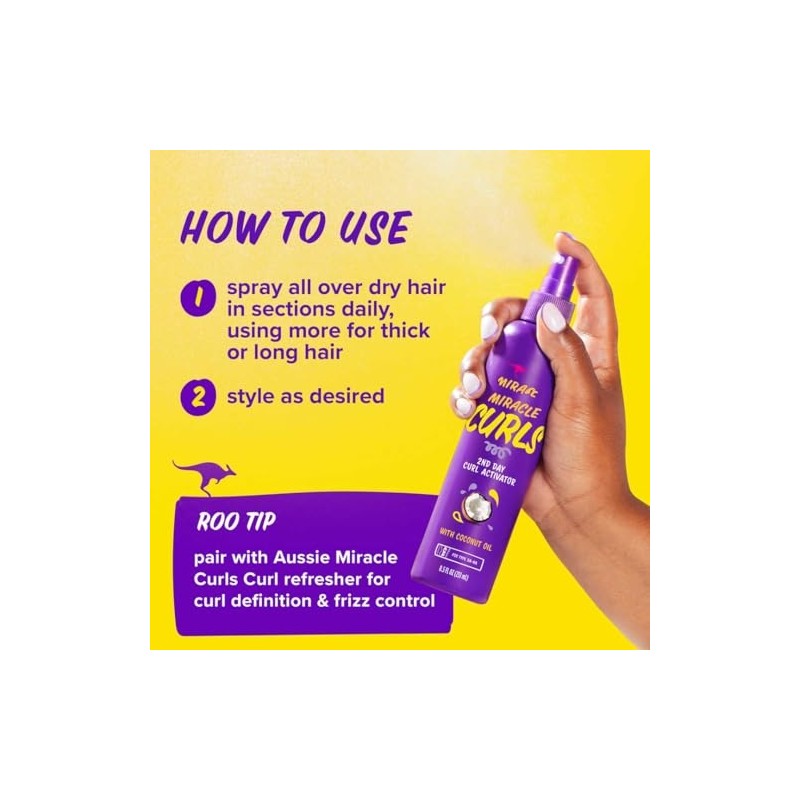 Au~ssie Miracle Curls 2nd Day Curl Activator Spray Gel, 8.5 fl oz (2 Pack)