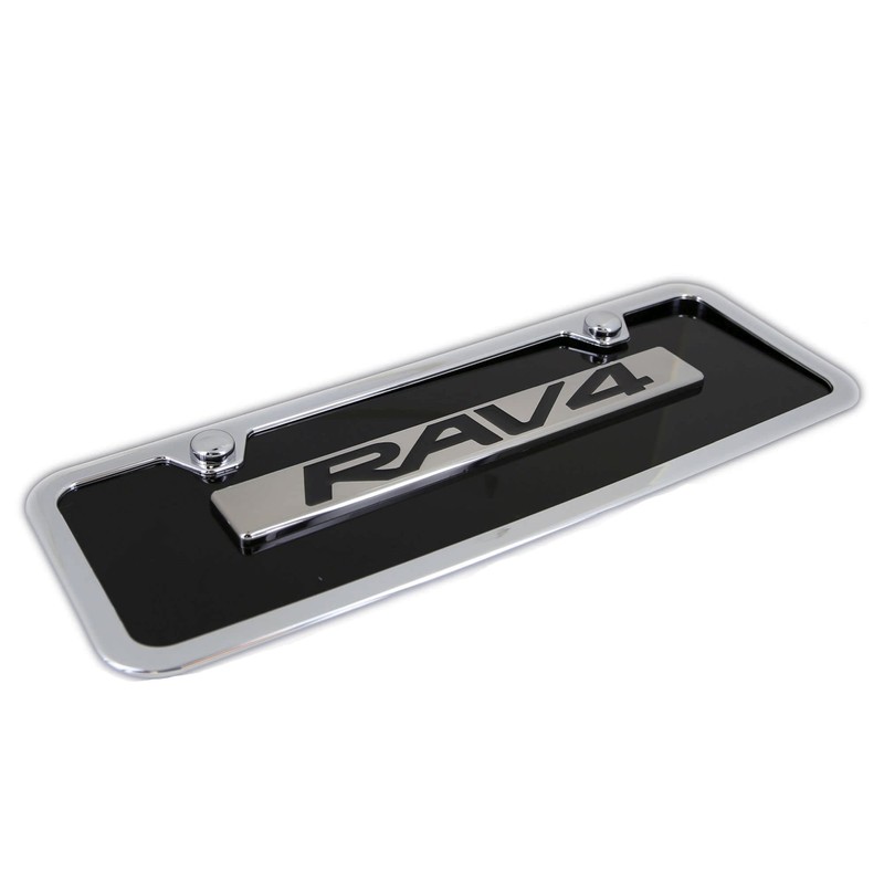 Au-TOMOTIVE GOLD Name Badge On Black License Plate + Frame for Toyota RAV4 (Black)