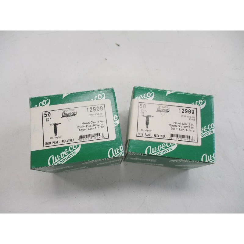 I am selling a AU-VE-CO Products 1" head trim panel retainer black, part # 12909. This item is new in original packaging, comes as shown. These trim panel retainers roughly measure 1" head x 9/32" stem x 1 1/16" L, constructed out of black nylon. For more information regarding this item contact a dealer in your area. (TMS / 170 B / 9104118) (10) Shipping cost is for the continental United States only (lower 48 states). For shipping outside of this area please inquire about shipping before purchase.