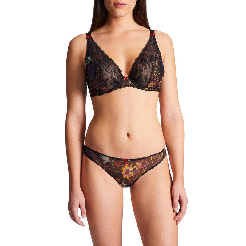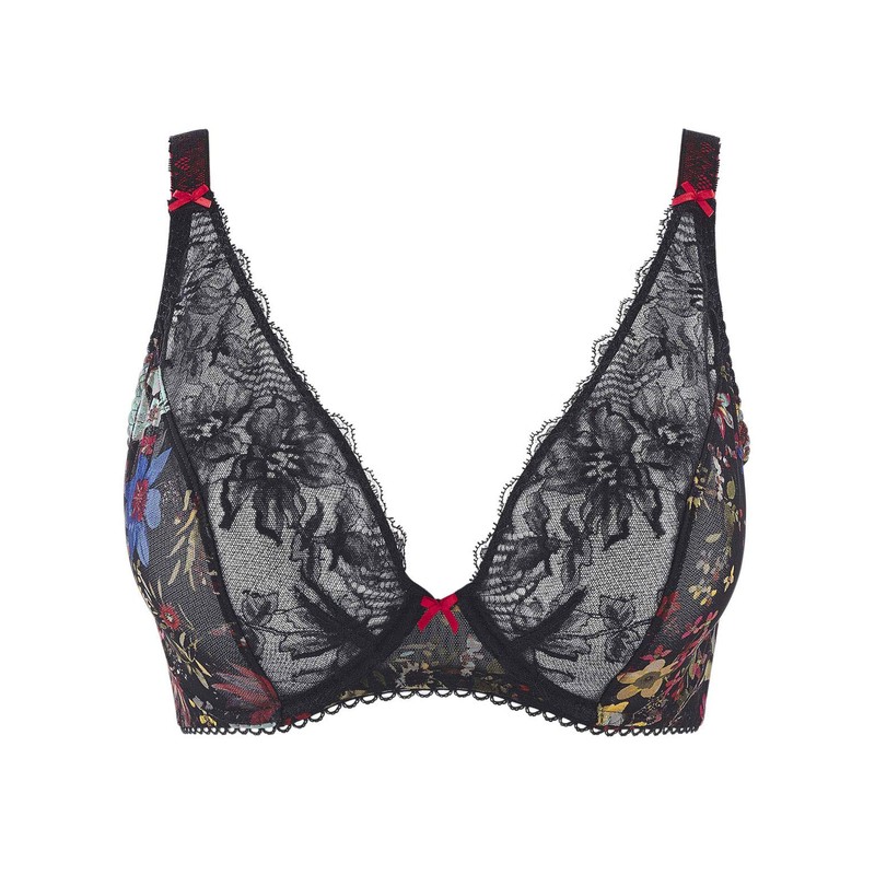 - Triangle bra for fuller busts with a pastoral, floral print on tulle fabric and lace trim