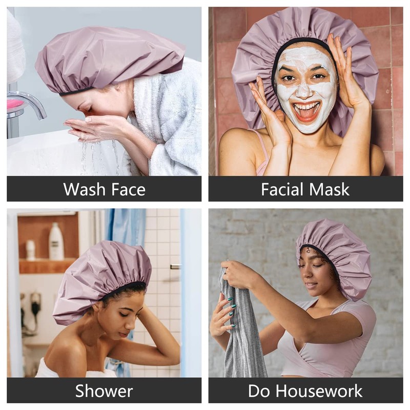 Auban Gorro de ducha extra grande para trenzas, doble capa impermeable reutilizable forro de satén XL, para mujeres grueso, pelo largo, rastas y trenzas (rosa)