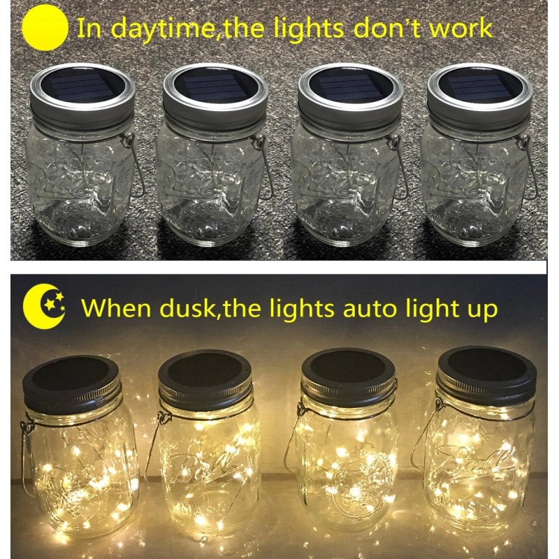 Very popular Mason Jar fairy fireflies Lights, be good for decorations around your apartment. Hung over anywhere,just as patio,garden,bedroom,and also suitalbe for party,wedding,christmas,color warm white,easy make a warmly atmosphere for family.Warm Noticed: the light will auto turn OFF when the daytime, if you want the lights working in daytime, just need covered the solar panel.