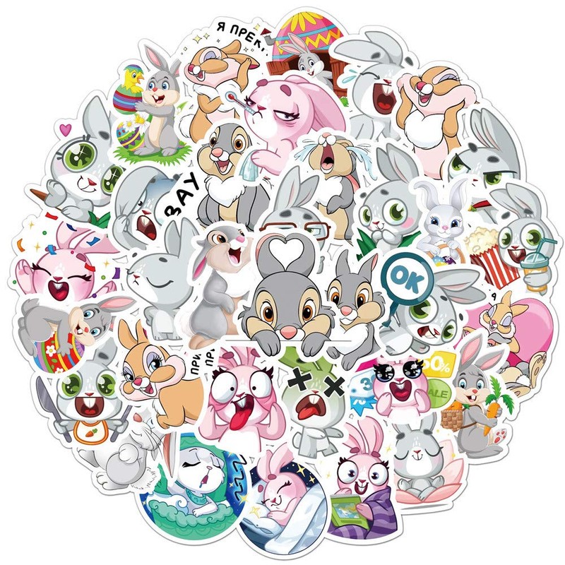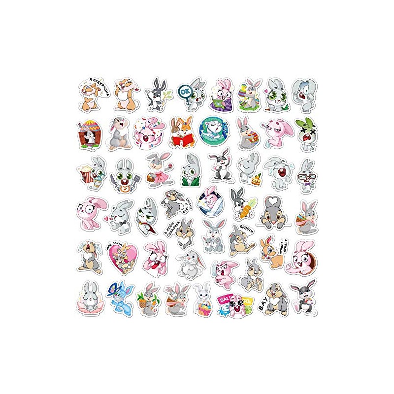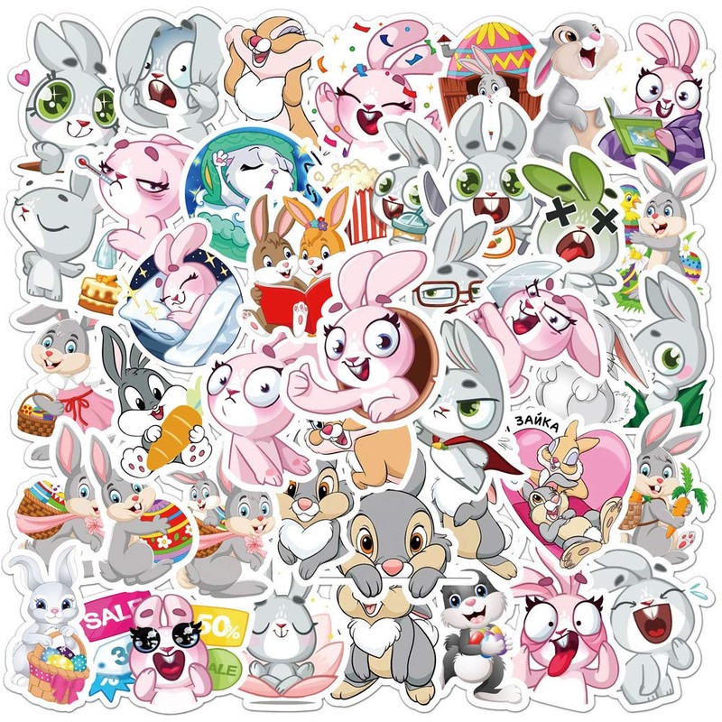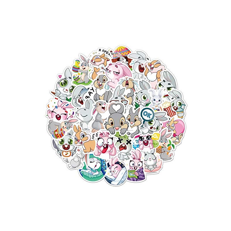 AUCEKO 50PCS Multicolor Cartoon Rabbit Stickers, Vinyl, Glossy, Waterproof, Reusable, Perfect for Kids, Outdoor Use, Stickers