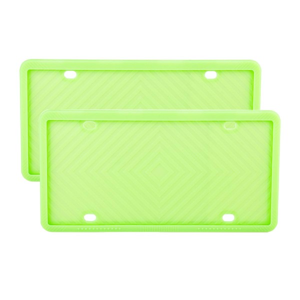 AUCELI Silicone License Plate Frame, 2 Pack Car Front Back License Plate Covers, Universal US Specification Plate Frames Holder, Rust-Proof and Weather-Proof, Auto Accessories(Fluorescence Green)