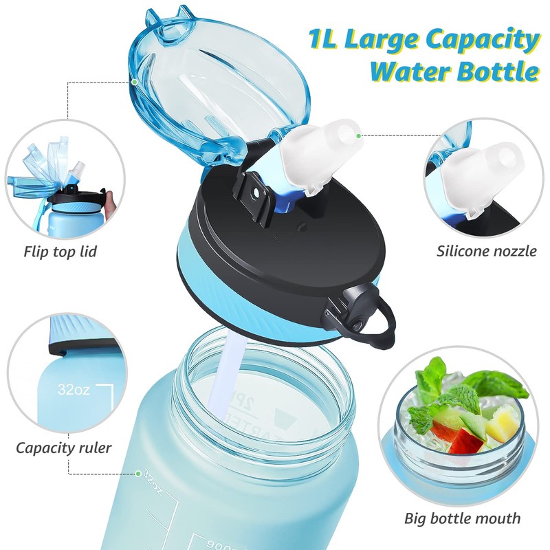 - High Capacity 1L large capacity, can fill you with water you want to drink in one day, reduce the number of times you need to refill, and save more time to do what you want to do.