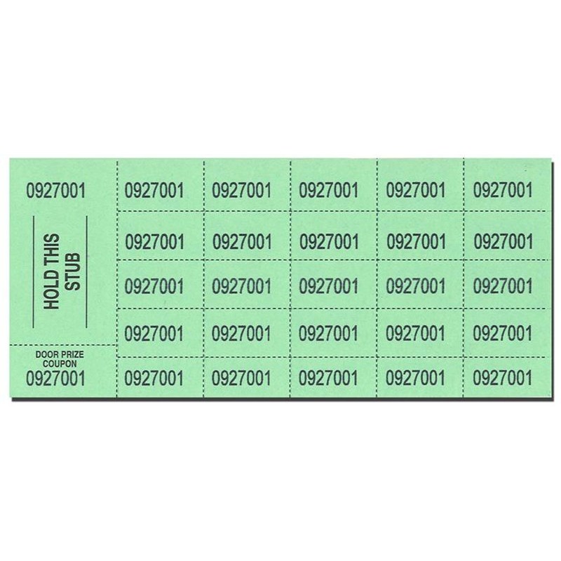 - Consists of 500 consecutively numbered sheets with 1 hold this stub, 1 door prize ticket, & 25 bidding tickets