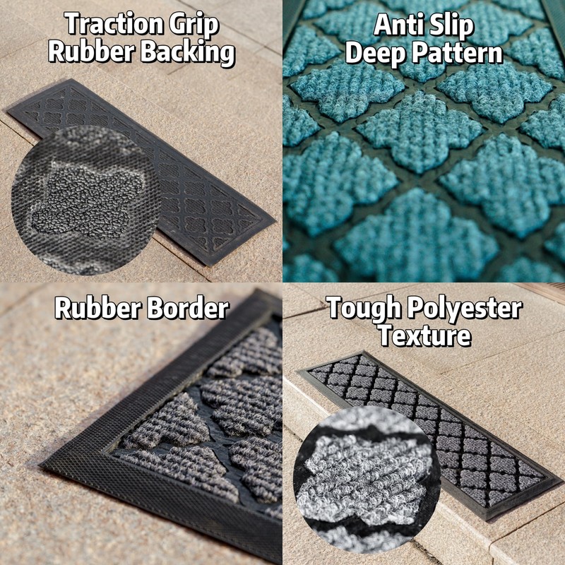 - Stair Mat Stays in Place. Worry about the step mat got blown away in Winter? Weighted stair rug won't be blew away easily, withstand the strong wind in storm season, perfect Winter decoration on wooden, concrete or tile steps.
