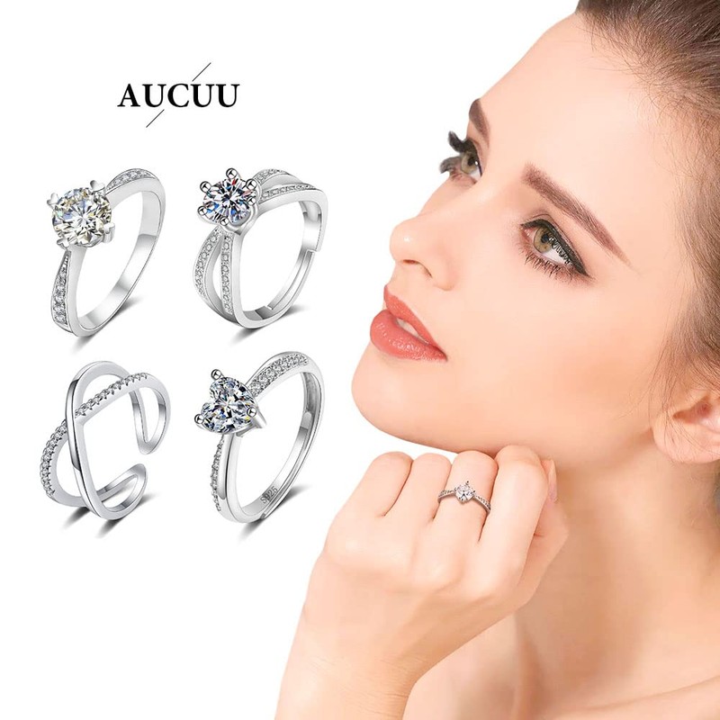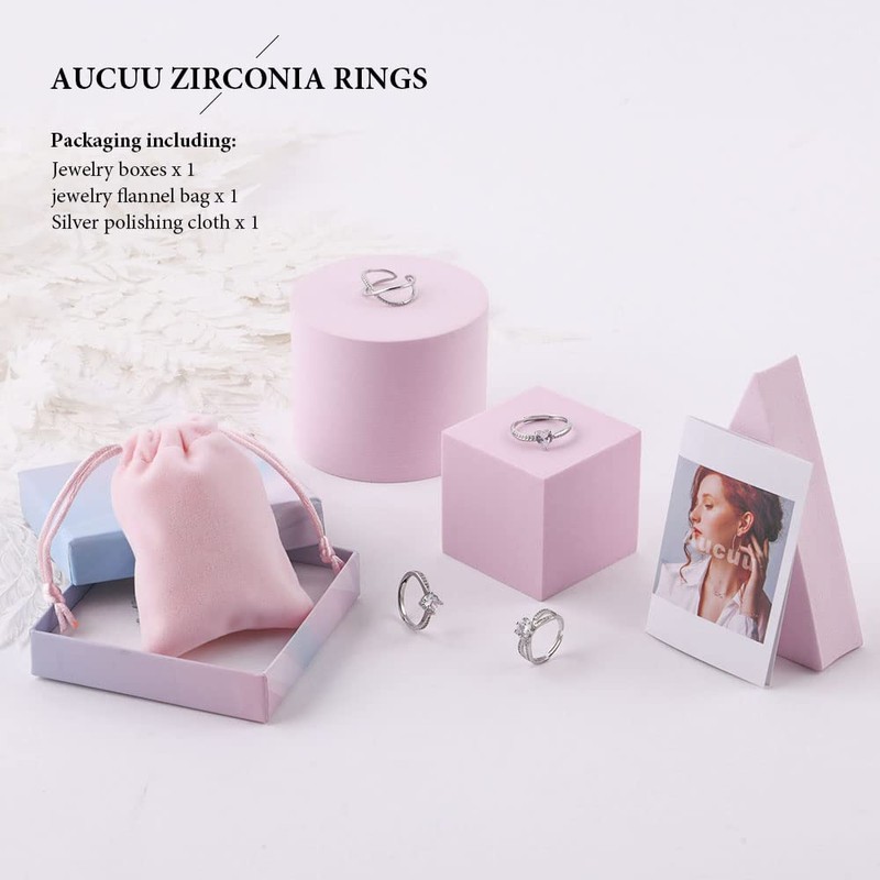Aucuu Anxiety Spinning Rings for Women, 925 Silver Women's Rings, Open Rings, Fidget Spinner Rings, Cubic Zirconia Fidget Rings, Adjustable Stackable for Stress Relief, Stainless Steel, Cubic Zirconia