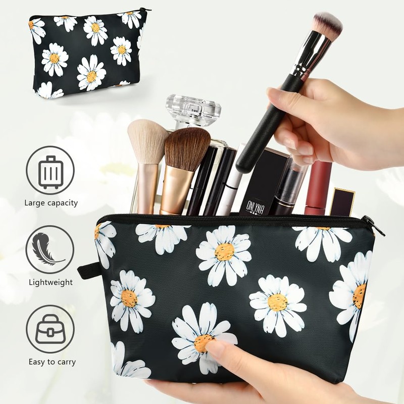 Aucuu Canvas Cosmetic Bag, Small Cosmetic Bag, Travel Cosmetic Bag, Portable Toiletry Bag, Multifunctional Makeup Bag with Zip, Cosmetic Accessory Organiser, #6 White Daisy 1pc