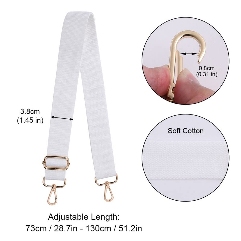 Aucuu Shoulder Strap, Adjustable Colourful Bag Strap, Universal Long Strap, Wide Strap Shoulder Strap for Men and Women, DIY Accessories for Bag, #2 White