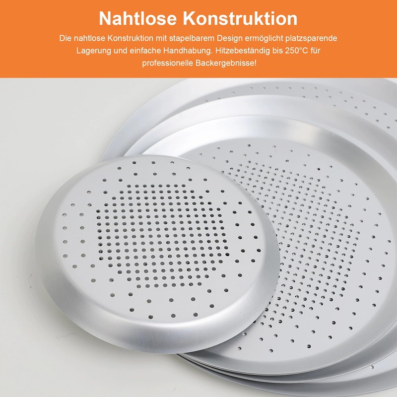 - Perforated baking tray: Thanks to the 3 mm perforation, moisture is efficiently wicked away - for an evenly crispy pizza. Seamless construction with stackable design allows for space-saving storage and easy handling. Heat-resistant up to 250°C for professional baking results