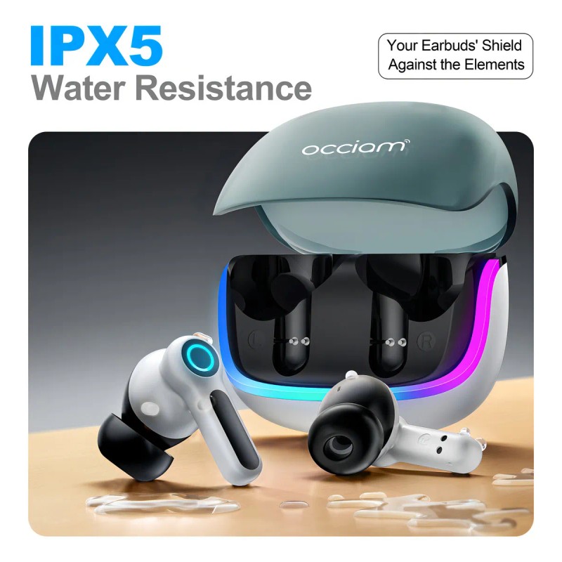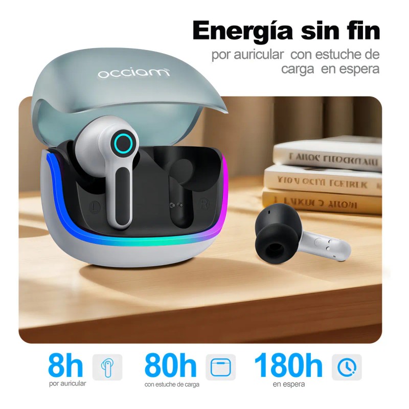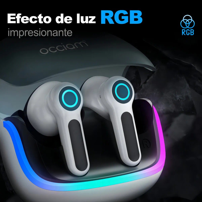 Audífonos Bluetooth Gamer Inalámbricos Occiam G07 In Ear In Gris - Luces RGB Cool, 80H Duración, 10mm HIFI, 360° Sonido Surround, 45ms Latencia Baja, Doble Micrófono, Carga Rápida 10min