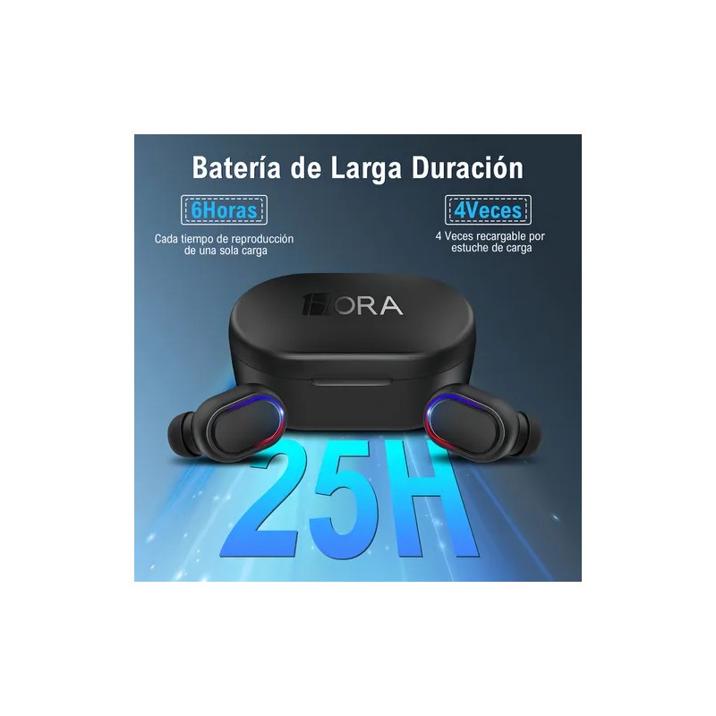 Reproducción Ultralarga de 25 Horas: Este impresionante audífonos bluetooth con duración de batería ofrece 6 horas de escucha continua al 100% del volumen. El estuche de carga de 300 mAh proporciona 4 veces la carga inalámbrica con 25 horas de tiempo de escucha en total (100% del volumen). Estos AURICULARES BLUETOOTH le permiten escuchar sus canciones favoritas durante los viajes, viajes o en casa sin molestar a familiares o compañeros de cuarto.
