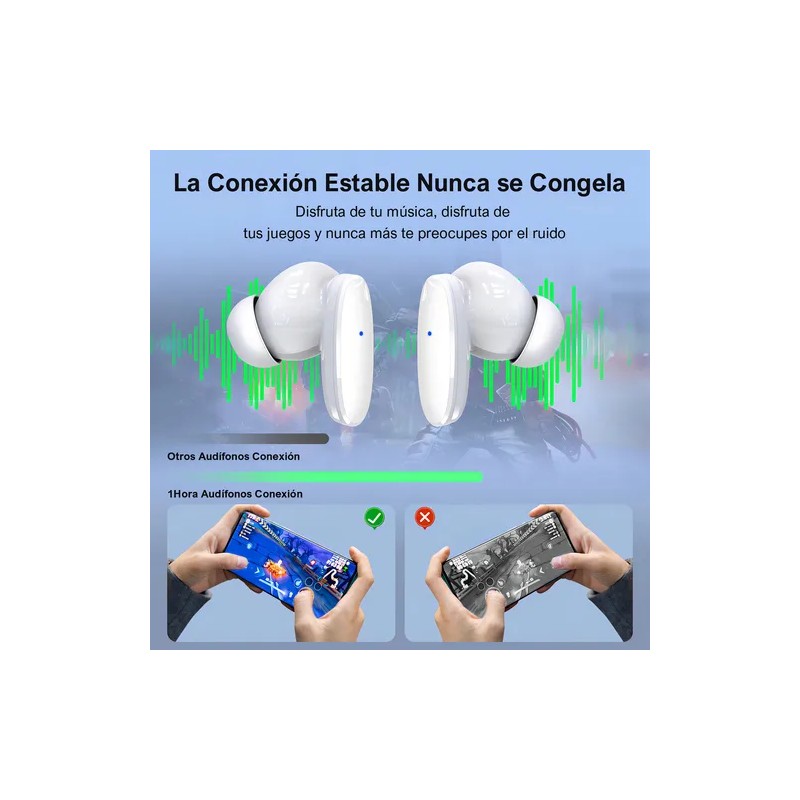 Audífonos In-ear Inalámbricos 1hora Aut205 Blanco Auriculares Inalambricos Bluetooth 5.3 Con Microfono