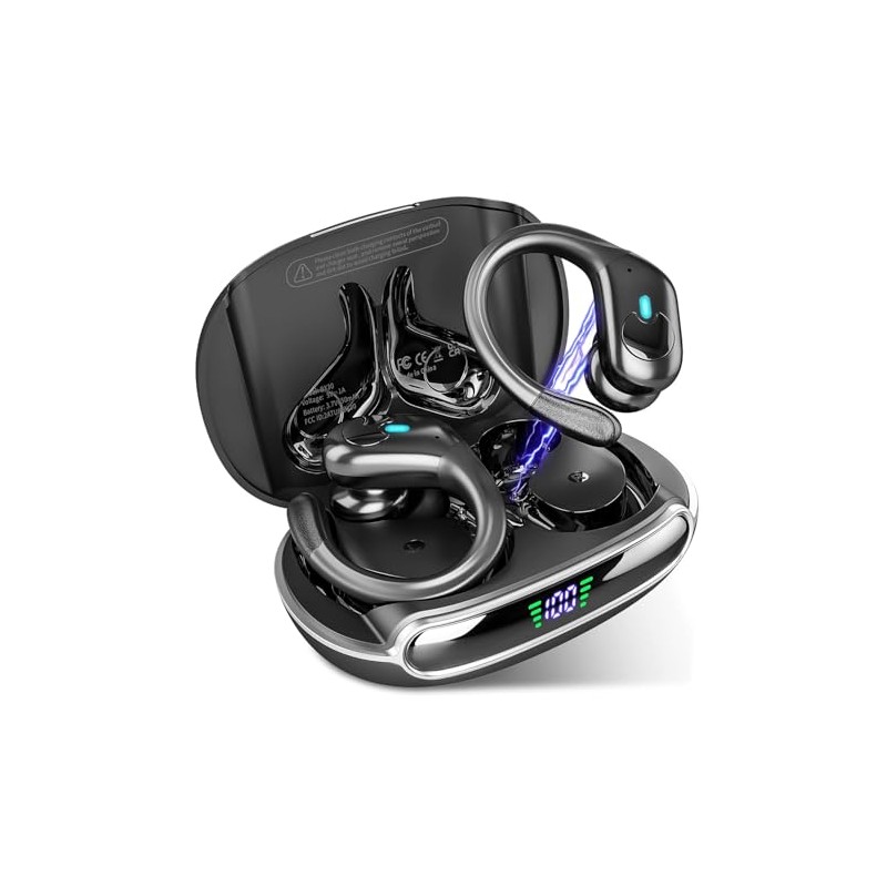 Audífonos Inalámbricos Deportivos, 80H Auriculares Bluetooth 5.3 HiFi Estéreo con HD Micró, ENC Cancelacion Ruido, Dual LED Pantalla, IPX7 Impermeable Auriculares Inalambricos para Running (Negro)