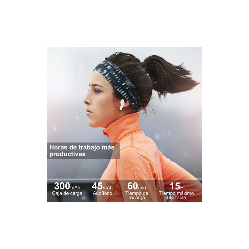 Con 4 horas de uso individual y hasta 18 horas de duración de la batería con el estuche de carga, no tendrá que preocuparse por quedarse sin batería a mitad del día.