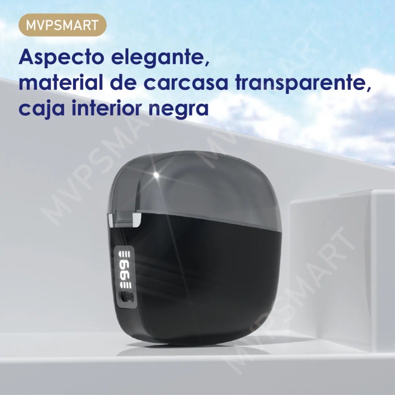 Audífonos Manos Libres Deportivos Open-ear Bluetooth Inalámbricos de alto volumen para llamadas MVPSMART OR2 Negro mate Con micrófono, luz LED, orificio para lanyard y pantalla digital