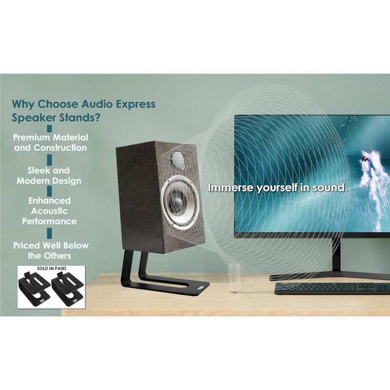 - Elegance and Confidence: Audio Express presents desktop speaker stands that add an elegant touch to any space. Increase your desktop workspace while optimizing your listening experience. Elevate your audio experience with confidence and style.