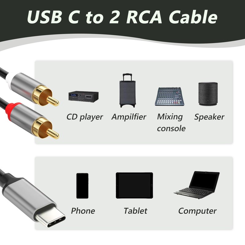 - 【Erweiterte Kompatibilität】USB C auf RCA Adapter kompatibel mit Geräten mit USB C Audio Anschlüssen wie Smartphones, Tablets, Computer, Verstärker, Lautsprecher, TV, Beamer, HiFi-Anlagen und mehr.