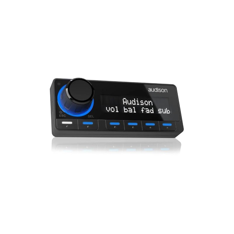 - Multimedia playback via digital remote control; Standard menu: main volume, subwoofer volume, fader, balance, source selector (Aux 1, Aux 2, Digital Electric, Digital Optical); DRC settings: keyboard color, keyboard brightness, display brightness, discrete screen, main screen logo (via DRC MP joystick). ; DSP Memory: Select reminders of Audison-compatible products. ; DSP Settings: Dynamic EQ, Bass Boost, AutoIN Level Adjustment