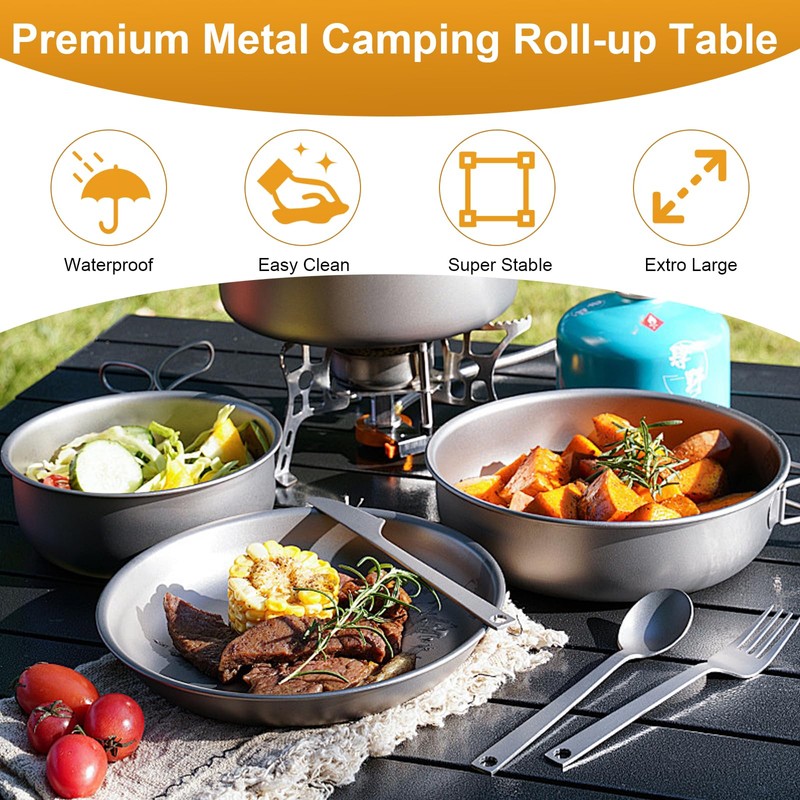 - Premium Sturdy Materials: This camping roll up table is made of upgrade strength materials make it more sturdy. Surface is water-proof and stain-resistant, easy to clean. The bracket adopts a stable X shape structure to provide sufficient support to carry up to 220 pounds