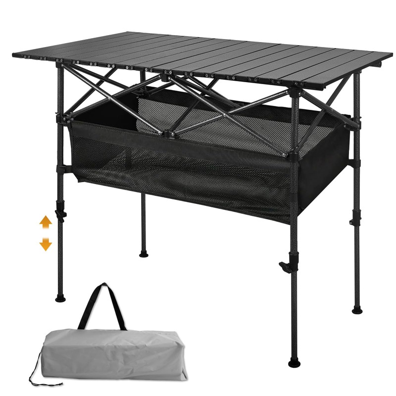 Audoyon Folding Camping Table, Outdoor Roll-up Table Height Adjustable & Portable 4-6 Person Metal Camp Grill Table for Picnic, BBQ, Party, Backyard, Beach, Mesh Storage and Carry Bag, Loads 220 Lbs