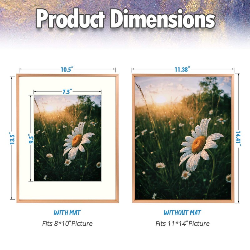 • Use and Display: Perfect For 8x10 Inch Pictures with The Mat and 11x14 Inch Pictures Without Mat; Comes with Hanging Hardware For Display In Both Horizontal and Vertical Formats To Hang Flat Against The Wall