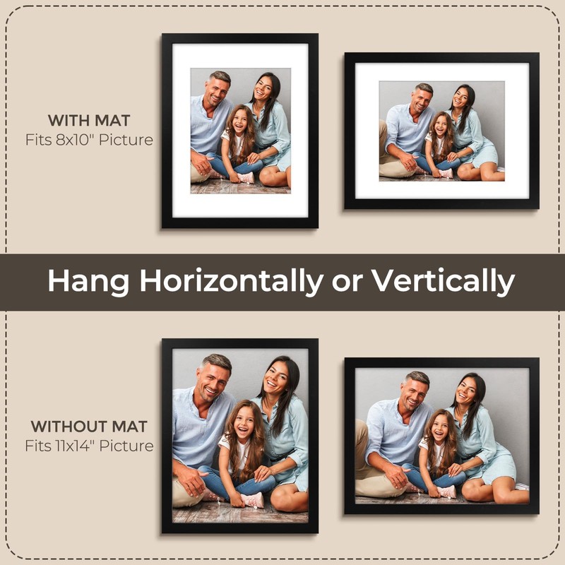 • Flexible Design: 11x14 Inch Picture Frame, with 2 Sturdy Hooks For Hassle-Free Display In Both Horizontal and Vertical Formats, Perfect For Display 8x10 (with Mat) or 11x14 Artwork, Diamond Painting, Canvas Prints, Pictures. Note: Mat Was Designed 0. 25 Inches (Opening 7.75x9.75 Inch) Smaller Than Photo Itself In Order To Hold It Steadily