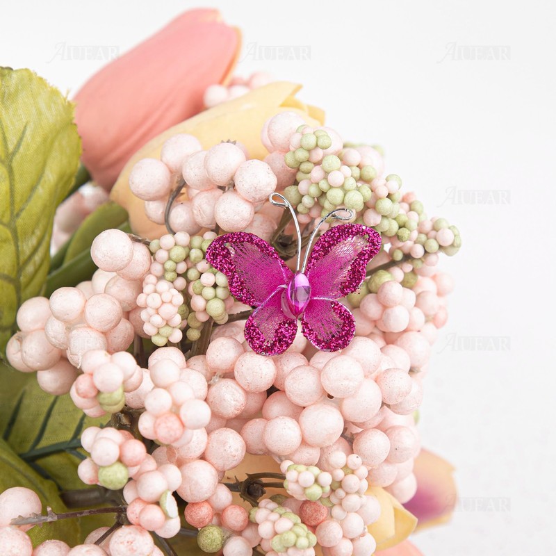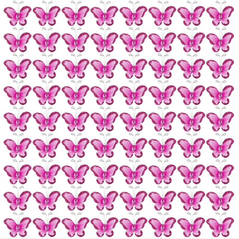 AUEAR, paquete de 100 mariposas con purpurina de alambre de malla transparente, decoración de mariposa con gema para decoración de pared del hogar, boda, fiesta (rojo rosa), MC20205X2_GROUP1