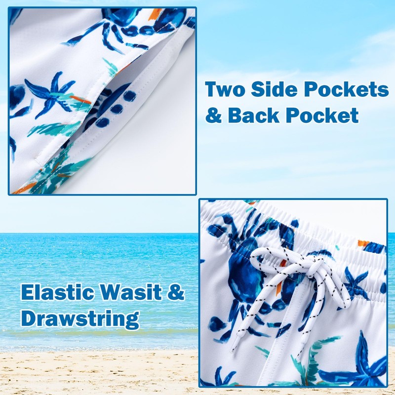 - Compressioned swim trunks: The boys bathing suit trunk with compression liner,which is stretchy and supportive to keep everything in place,also help to prevent chafing and keep sand out.