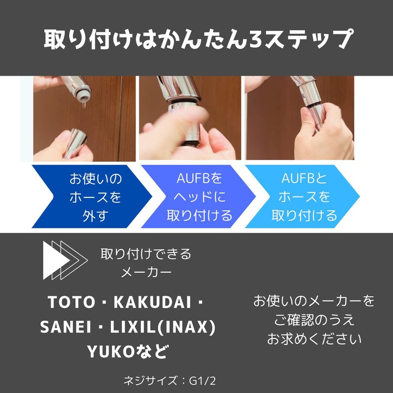 AUFB [Heavy Duty All Stainless Steel] TOTO LIXIL Nano Bubble Generator G1/2 Screw for Shower Heads, Ultra Fine Bubble, Pore Cleaning, Scalp Care, Skin Care, Water Saving