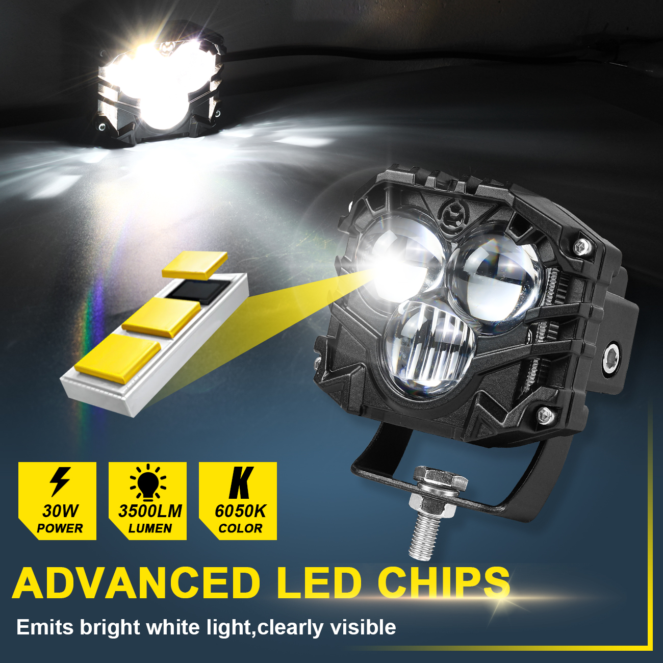 ►Excellent brightness: The lamp is equipped with a lens made of PC material to improve the focus of light, with a high brightness of 3500 lumens and a color temperature of 6070K, ensuring a bright and clear field of view and enhancing nighttime driving safety.