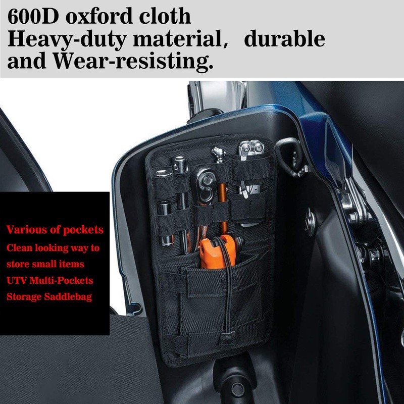 - ▶4. Easy install.Stick the Tools Organizer Bags on the inside panel of any OEM hard bags with a depth greater than 11 inches.Also can be easily pull them out at anytime.