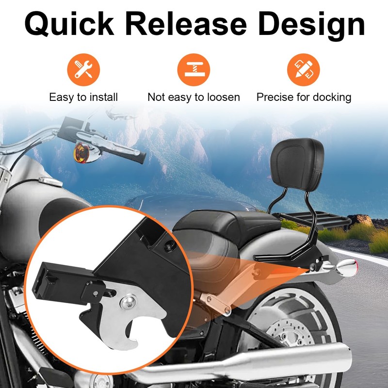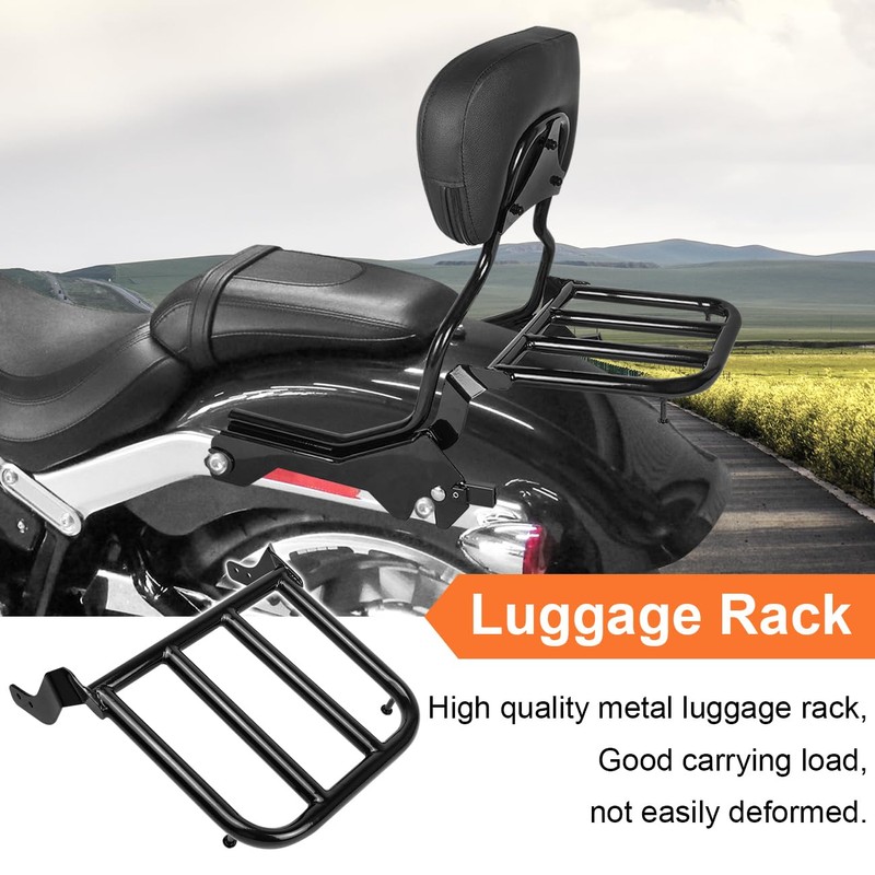AUFER Rear Passenger Upright Backrest Sissy Bar With Luggage Rack Docking Hardware Kits Set Compatible With For 2018-UP Softail Fat Boy FLFB 114 FLFBS Breakout FXBR 114 FXBRS
