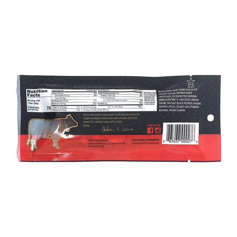 Aufschnitt Spicy Chocolate Beef Bars with Dark Chocolate and Chia Seeds | Certified Glatt Kosher | Gluten Free, No Nitrites | 12 ct.