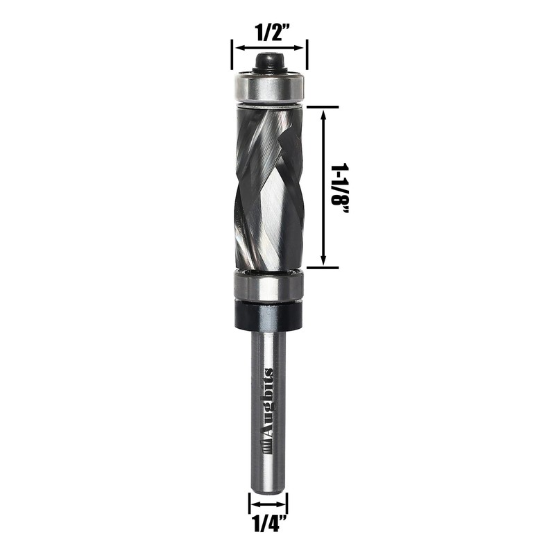 - 【Size】Augbits Top and Bottom Bearing Flush Trim Router Bit 1/4" Shank, 1/2" Cutting Diameter, 1-1/8" Cutting Length.