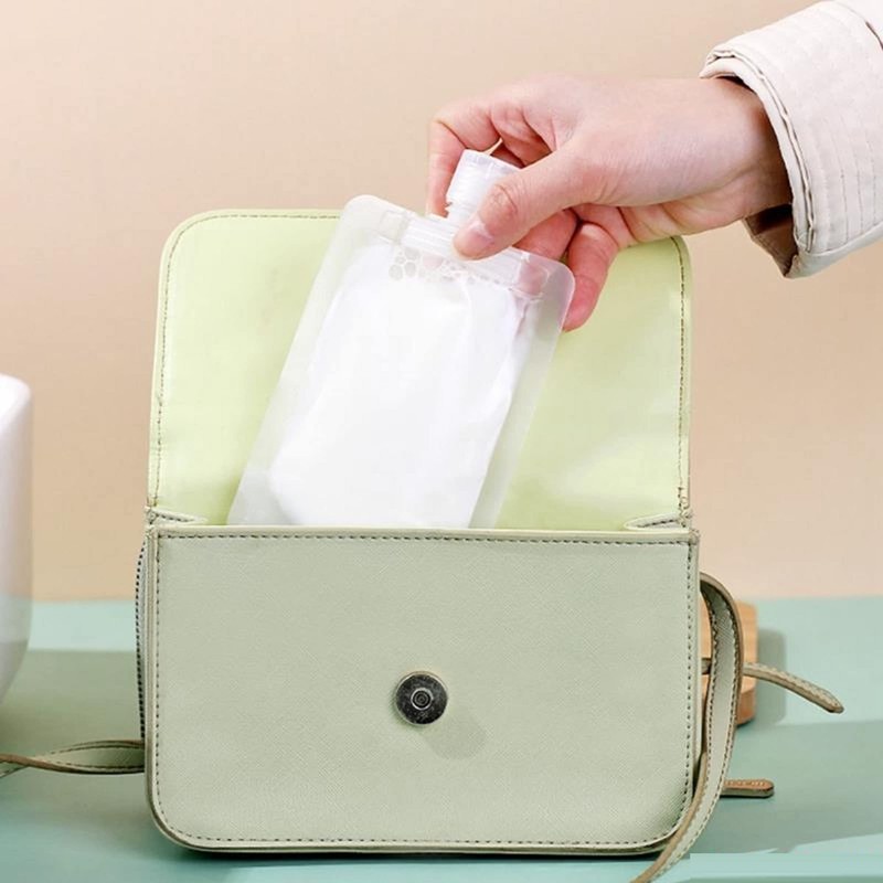 AUGEN Travel - Bolsas de embalaje de maquillaje fluido (30 ml/50 ml/100 ml) - Contenedores de boquilla de pie a prueba de fugas para artículos de cambiador, loción, champú (paquete de 1 juego)
